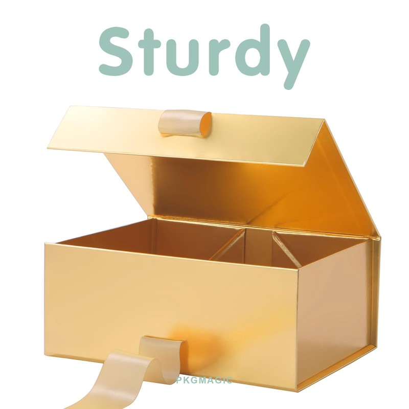 - DESIGN The magnetic gift box with ribbon is easy to attach to a bow, additional decoration and a secure closure. Hidden magnets, strong magnets keep the lid closed even after repeated use