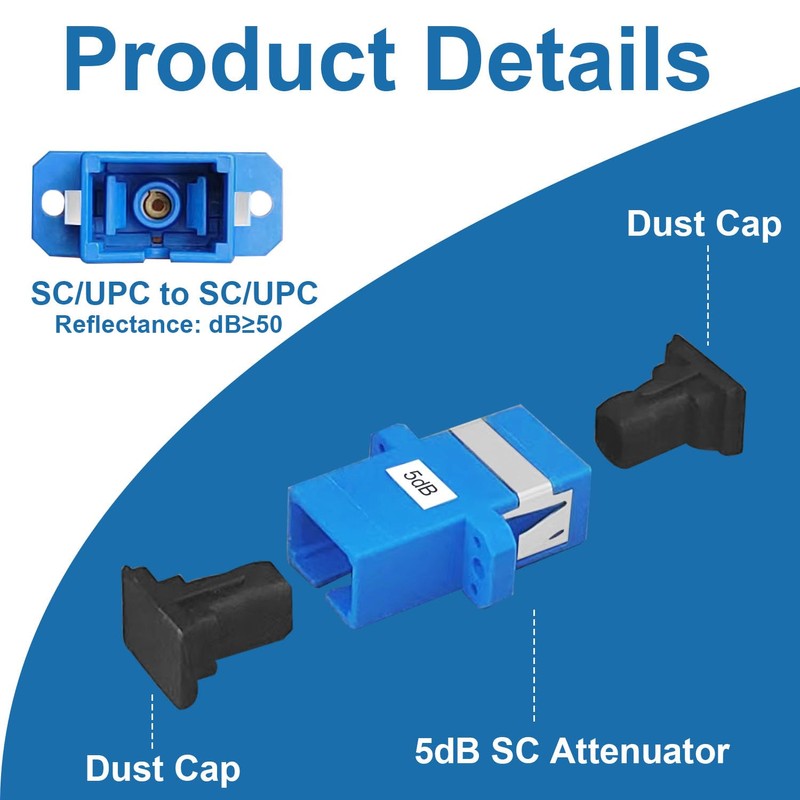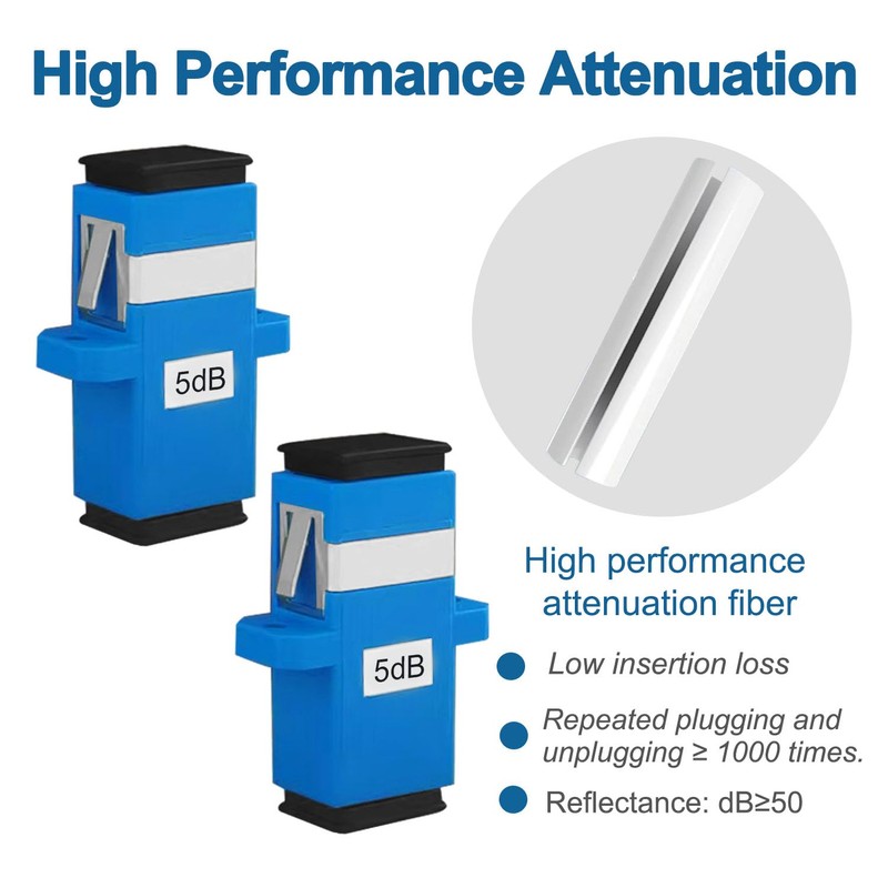 • 【Good Performance】SC UPC Fiber Optic Attenuator: With high-precision attenuation of ± 0.5% dB, polarization related loss ≤ 0.2dB, and return loss ≥ 50dB, it maximizes signal integrity and transmission stability.