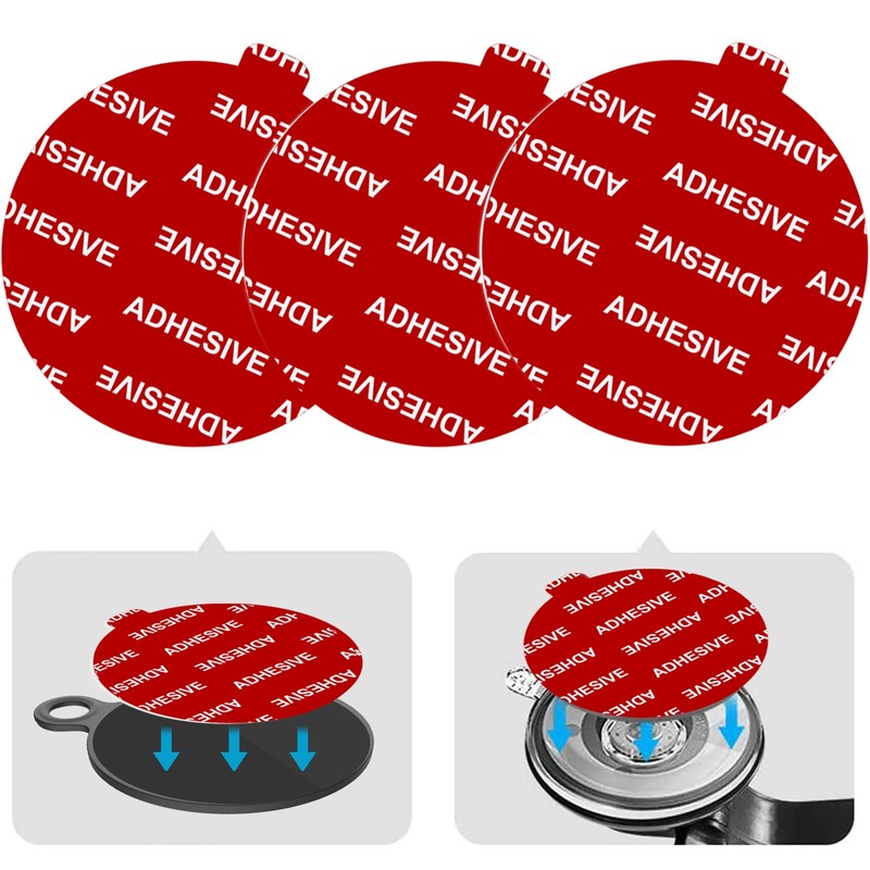- 【Easy to Install】Provided rounded rectangle raised label to easily peel off the red release film of the adhesive pads. When using, first easily peel off the white release film, stick the adhesive to the dashboard pad mounting disk or to the suction cup base directly, then peel off the other red side film and stick to your car dashboard. Press down repeatedly to increase the contact of the adhesive with the substrate. please wait 24 HOURS to use.