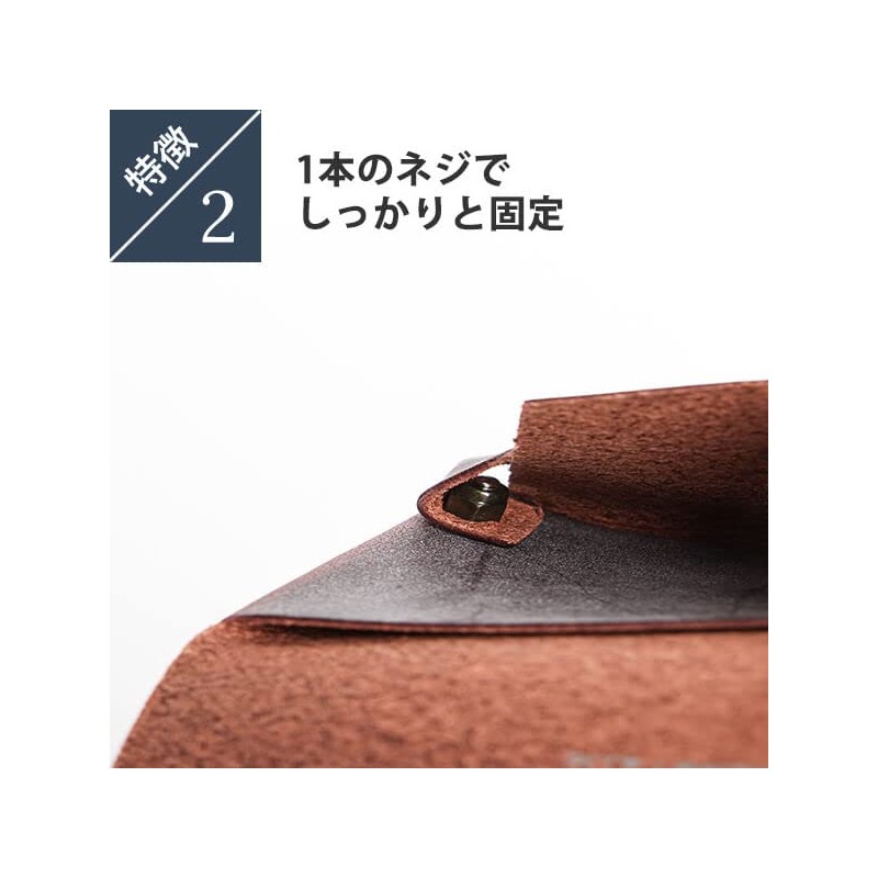 - One piece of leather is folded over like origami, so there is no seams. One high strength screw is firmly fixed and the seamless design reduces the burden on the leather and is durable