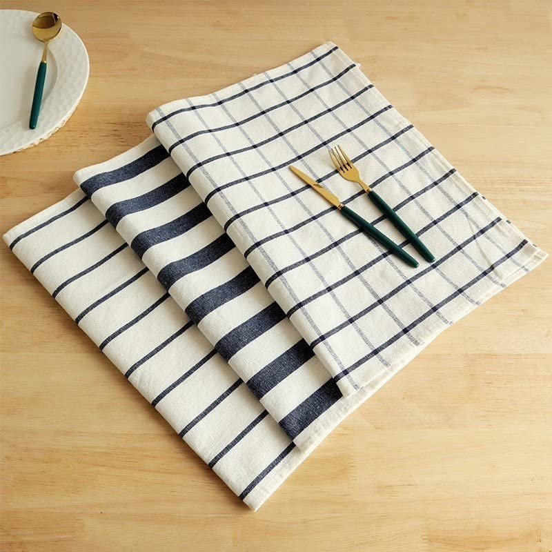 Placemat, Cotton, 100% Cotton, Fabric, Stylish, Scandinavian Style, For Restaurants, Improves Atmosphere, Anti-Slip, Friction Resistant, Gorgeous, Blue, Gingham, Striped Pattern, Washable (pinstripe)