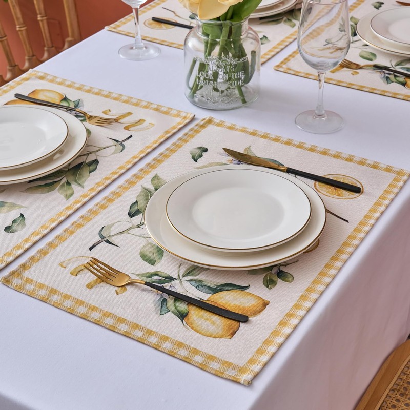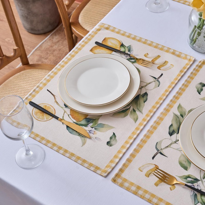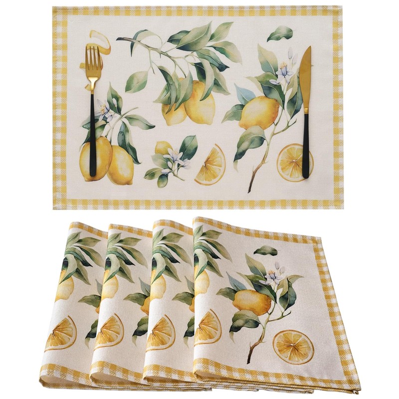 - LEMON PLACEMATS Adorable fresh lemons hang on the branches, exude a rich fragrance and are dotted with natural leaves, adding summery refreshment and vitality to your home.
