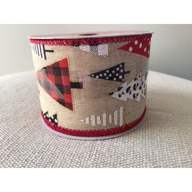 Plaid 2 1/2” Christmas Plaid And Leopard Trees Wired Ribbon Roll 20 Feet ( 6.66 Yards)