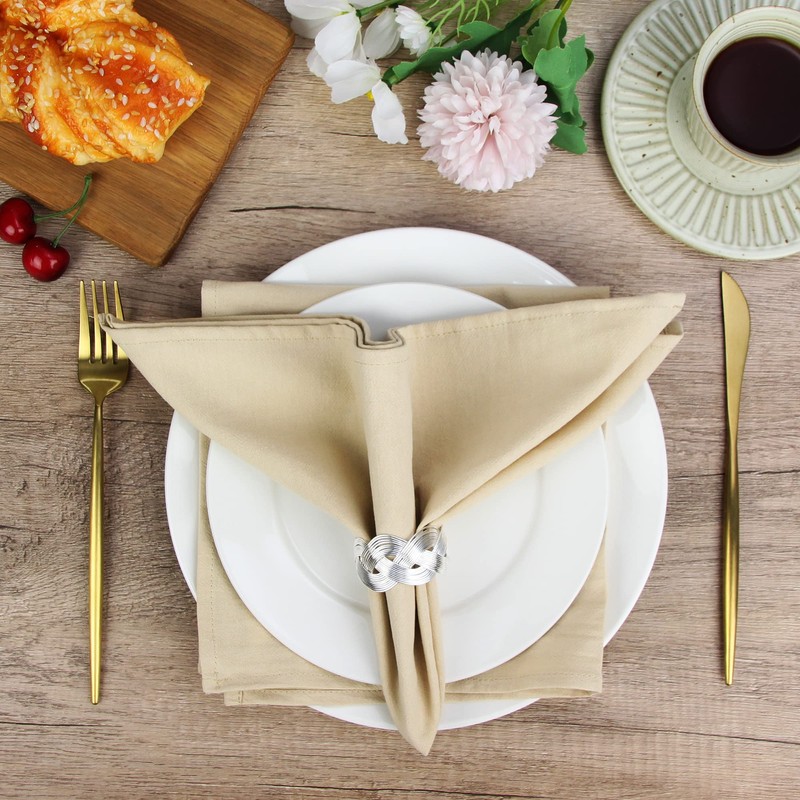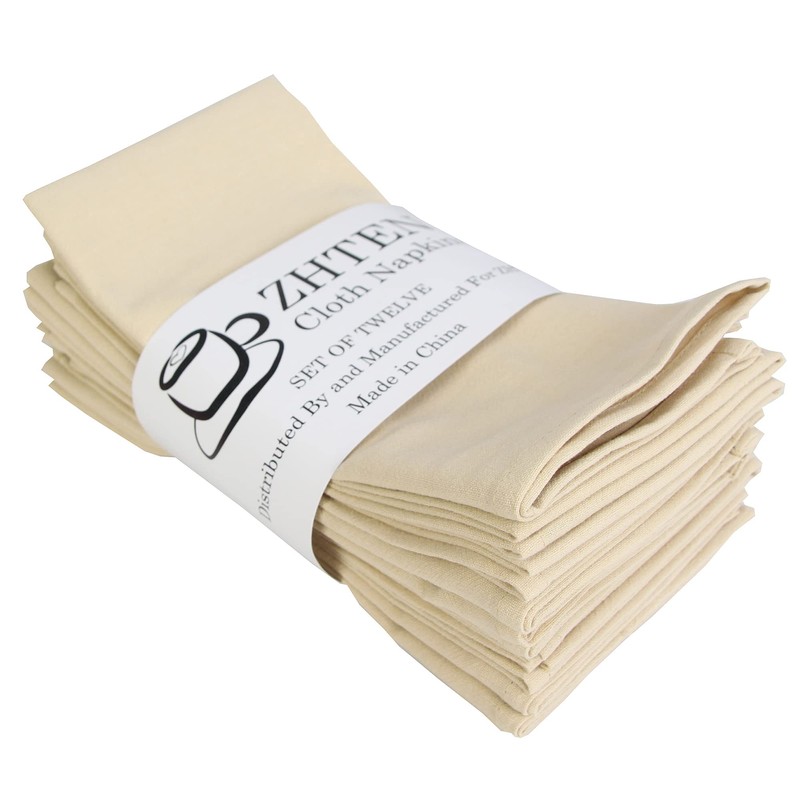 Plain Dinner Cloth Napkins, Set of 12 (16 x 16 Inches), Durable Cotton Kitchen Table Napkin, for Cocktail Parties, Weddings, Hotel & Home Use (Beige)
