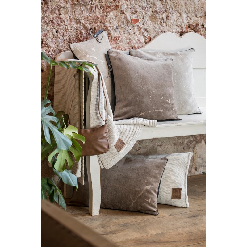 - The knitted Knit Factory plain cushion beige is a stylish and eye-catching item for your sofa