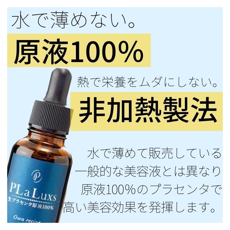 First in Japan! 100% Raw Placenta Liquid Serum [100% Plarus Raw Placenta Solution] Developed using a unique waterless and non-heating method. For those who prefer a carbonated mist please search for "raw placenta" from the shop. Because it does not use water, it is "overwhelming concentration", because it does not use heat and is 100% raw placenta solution for "completely waterless extracted and unheated method" without water or heat. In order to create a more concentrated placenta extract, we have made a focus on "waterless extraction" that does not use water when extracting from the placenta. No other ingredients as much as possible and concentrated placenta extract. A "heating process" is required to extract common placenta extract. When that happens, the heat sensitive "gloss factor" will become lost. However, the unique "unheated method" prevents the loss of the "gloss factor". The gloss factor is EGF, FGF, IGF, and TGF. In addition, we have created 100% raw placenta solution that is unhydrated to prevent the effectiveness of the placenta and unheated raw placenta solution that does not use water, no heat, and no water. In addition, it has been formulated with an astonishing concentration of over 90% of the placenta for a more effective experience. A great addition to your regular care for your skin and radiant skin. "Placenta" means "Placenta" means "Placenta", which contains the five major elements of proteins, fats, sugar, vitamins and minerals, and most of the nutrients required by humans. Placenta extract extracted from placenta is said to be effective in creating better skin with a wide range of beauty effects.