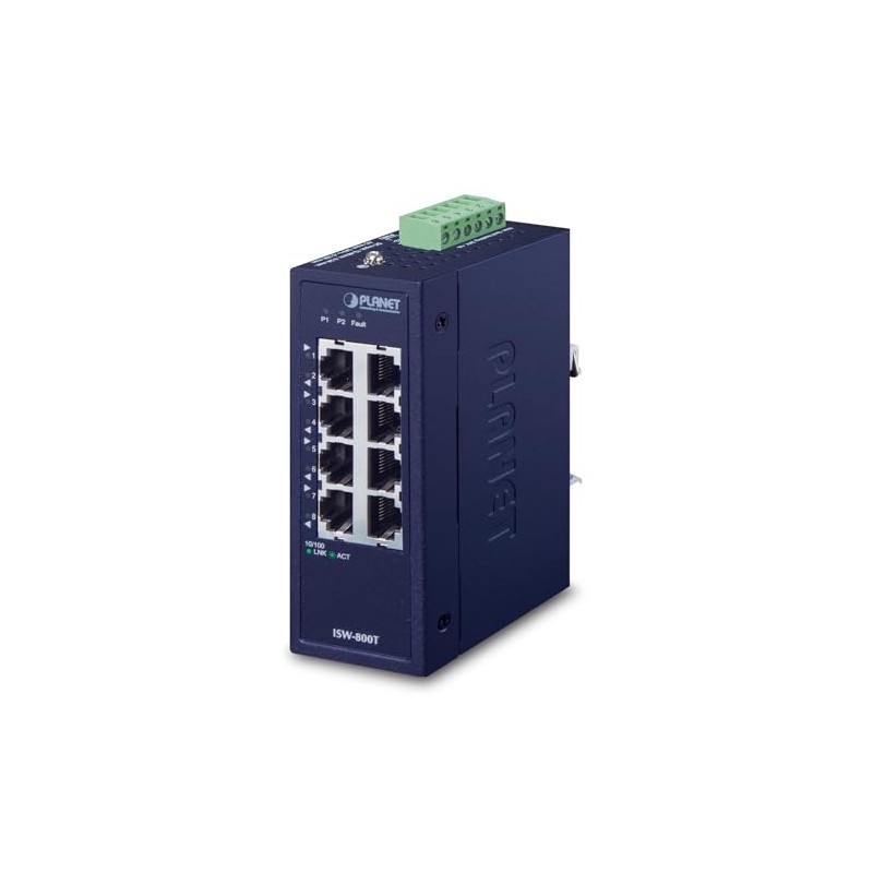 Planet IP30 Compact size 8-Port 10/100TX Fast Ethernet Switch, ISW-800T (10/100TX Fast Ethernet Switch (-40~75 degrees C))