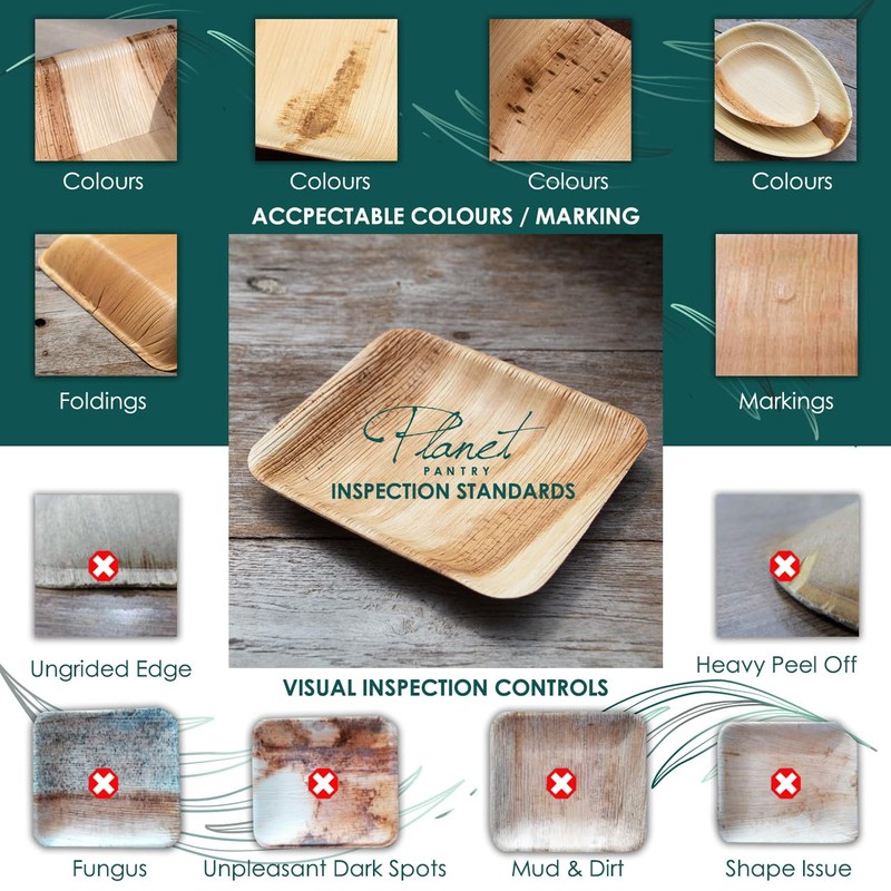 Sturdy - Made only from good quality selected palm leaves to safely hold many different kinds of food. Stronger and more natural than corn or potato starch, sugar cane, paper & bamboo plates