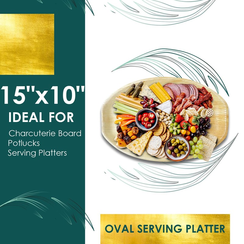 - 🎉 PERFECT FOR ANY PARTY: Suitable for professional use, indoors and outdoors. These disposable Palm Leaf serving trays and platters add a touch of nature to your decor with their rich wooden appearance. Ideal for charcuteries, cheese boards, and buffets, these compostable serving pieces enhance any special event. Make your party beautiful and eco-friendly with our bamboo-like compostable serving pieces.