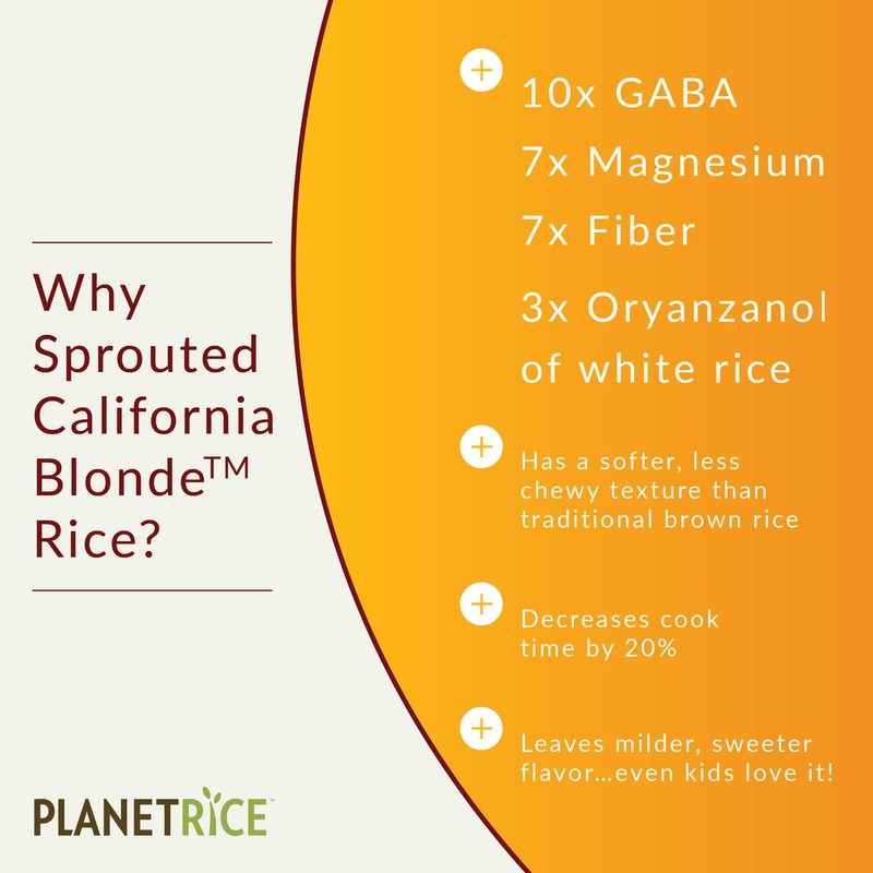 Planet Rice Bulk Sprouted Blonde Rice Bulk - Great for Bulk Rice Cooking - Gaba Rice Gluten-Free, Vegan, Paleo, with 64% more Fiber - Soft and Chewy Texture - 22 Ounce (Pack of 6)
