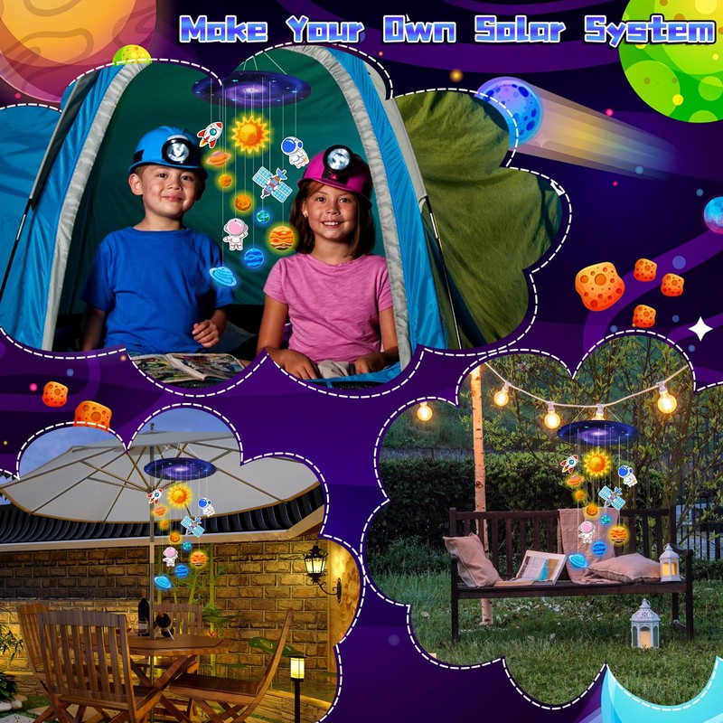 - Explore the Space with Kids: This Planet Toy lets kids craft their own solar system wind chime while learning astronomy. Perfect for Science Kits lovers. each planet glows at night, turning their room into a starry galaxy. Includes easy-step guide & safe materials—ideal for boys toy age 8-10 or arts and crafts for kids ages 6-12. A fun solar system project kit that sparks creativity!