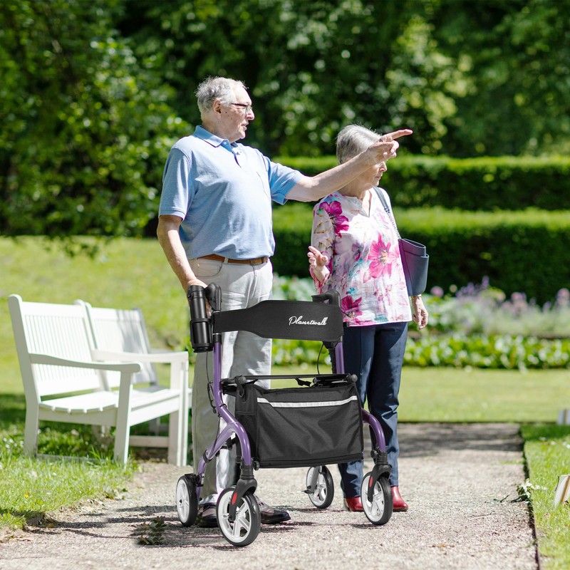 PLANET WALK Super Lightweight Rollator Walker for Seniors, Foldable Rolling Walker with Seat and 8" Rubber Wheels for All Terrain, Upgraded Height Adjustment Button with Cup Holder, Purple