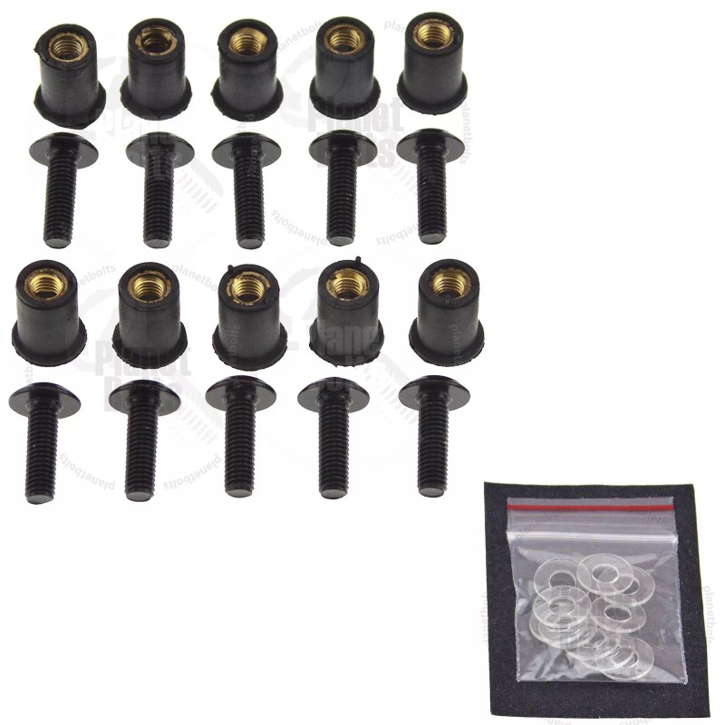 PlanetBolts Black 10x Windscreen Bolt Kit CBR GSXR ZX Mount M5 x 1.25p Wellnut Fairing