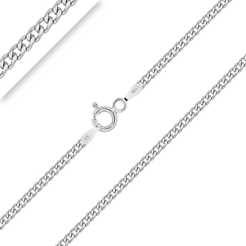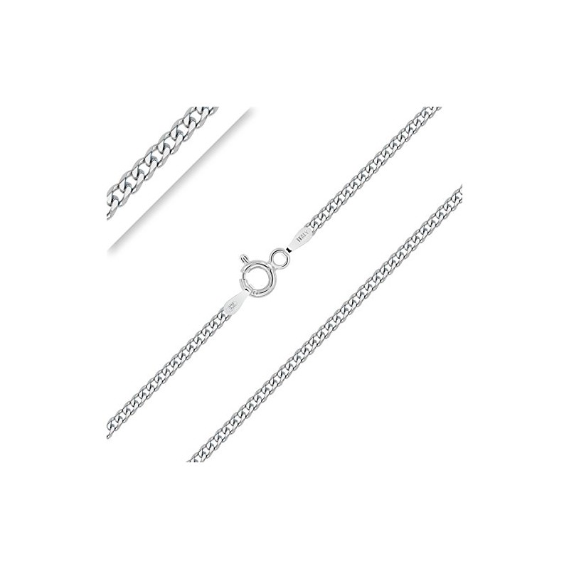 PLANETYS - Flat Curb Chain 2 mm Width 925 Sterling Silver Rhodium-Plated Chain - Necklace - Various Lengths: 40-45-50-55-60-65-70 cm, Sterling Silver, No Gemstone