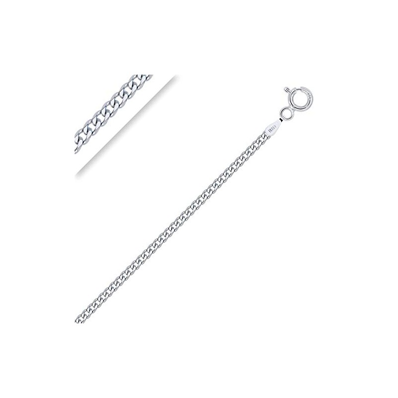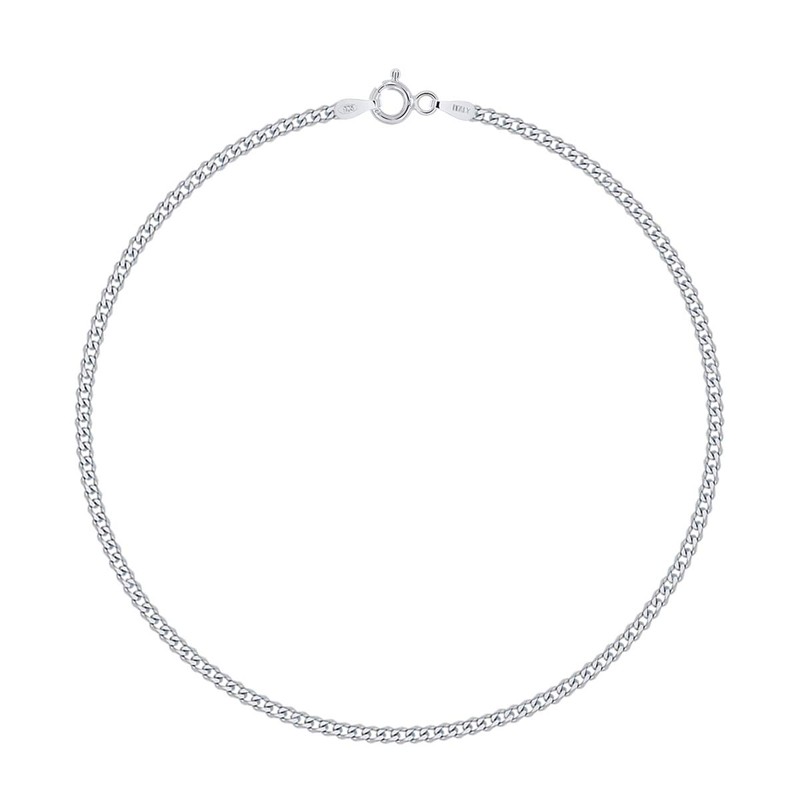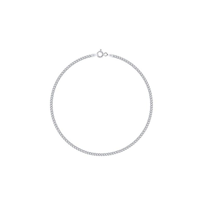 PLANETYS - Flat Curb Chain Bracelet 925 Sterling Silver Rhodium-Plated 2 mm Width Various Lengths 18-19-20-21 cm, Sterling Silver