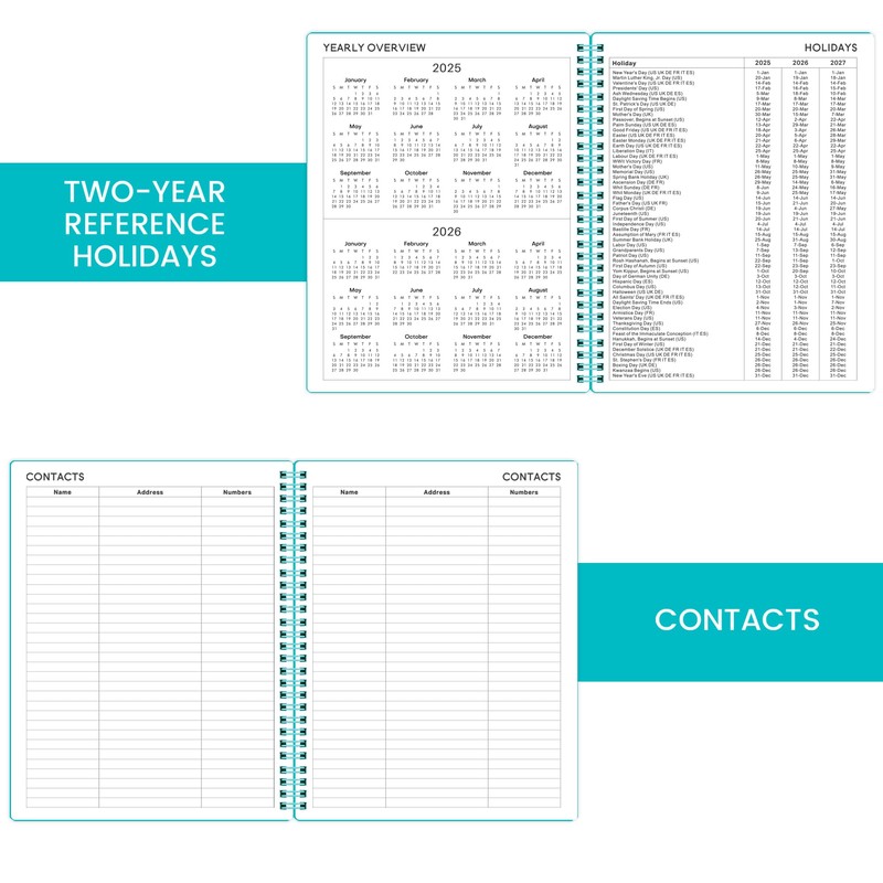 - Functional - 8" × 10" Planning Pages | Flexible Cover | 12 Monthly Tabs | Quick Reference Information | Yearly Overview | Holidays | Contacts | Twin-wire Binding | Premium Thick Paper.