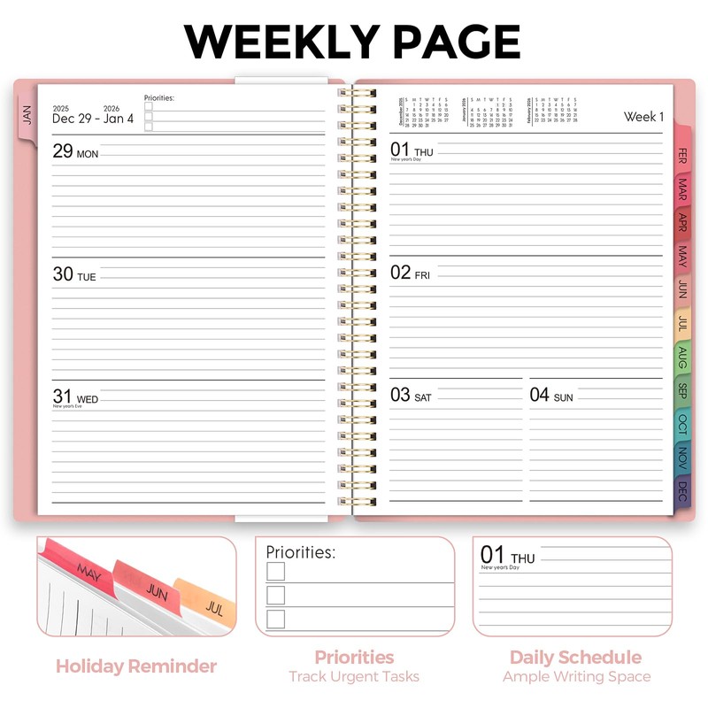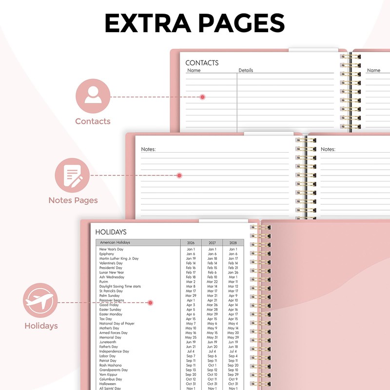 • 8.5 x 11 Inch Agenda – Enjoy ample space to write down appointments, notes, and important reminders. The large size makes it ideal for detailed planning, helping you manage your busy lifestyle with ease.
