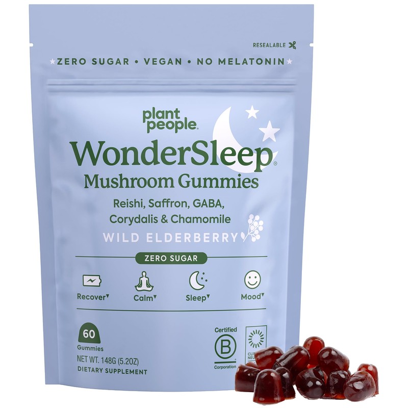 Plant People WonderSleep Mushroom Gummies Supplement for Sleep and Relaxation with Reishi Super Mushrooms, Wild Elderberry Flavor, No Sugar (60 Count)