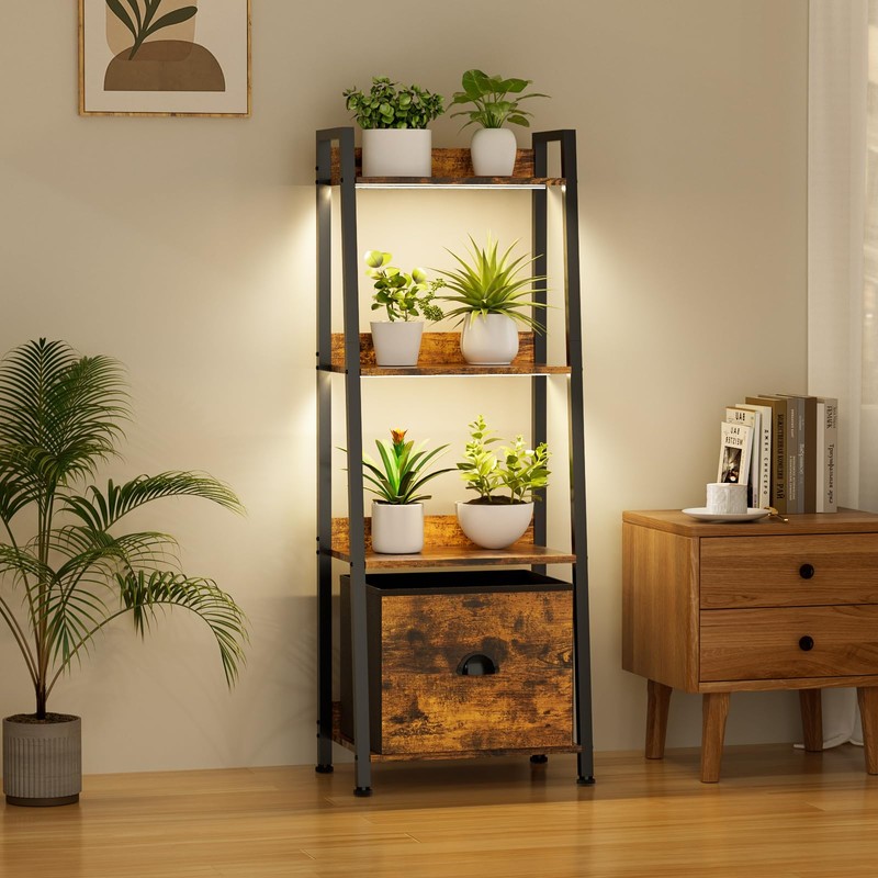 - STABLE & SAFE PLANT STAND: The grow light shelf is constructed from durable metal ladder frame and particle board with four back panels to enhance the overall stability; Anti-tip device is included in the package to securely fasten the bookcase to the wall for safety