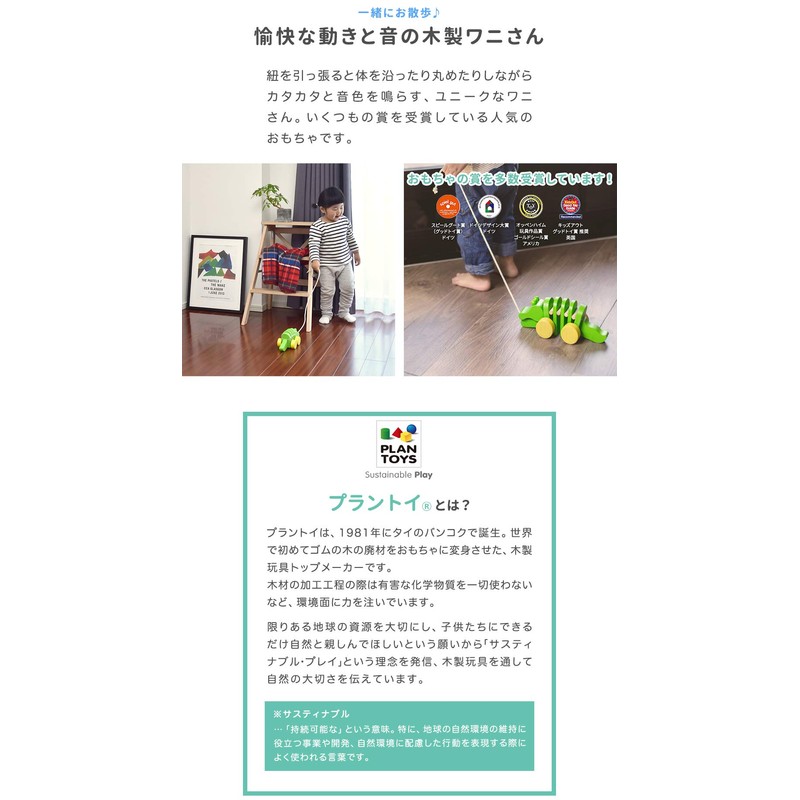 A unique crocodile that rattles while pulling the string along and rolling around the body. This is a popular toy that has been awarded by many awards.