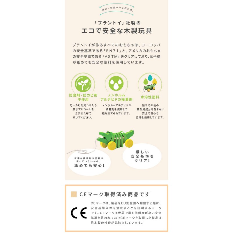 All toys made by Plant Toys have passed the European safety standard EN71 and ASTM American toy safety standards, and paints that are safe for children to lick.