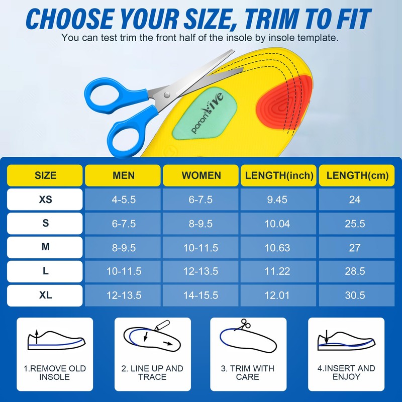 - Trim To Fit & Daily Use: Our flat feet insoles men is adaptable for various footwear. You can trim the insole to fit your all shoes better. With the help of FocusOnInsole orthotic insoles arch supports, you are able to enjoy happy exercising without being bothered by sweat at the same time, keep your feet dry.