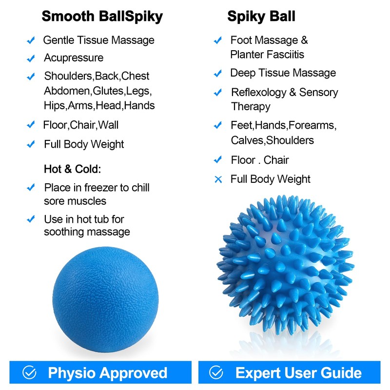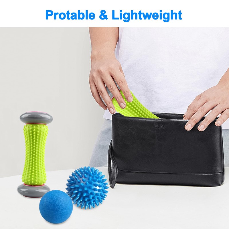 - ★PORTABLE---The massage ball set including 1*foot massager roller(2.69*6.69 inch), 1* spiky ball (diameter 2.95 inch) and 1 x lacrosse ball (diameter 2.36 inch), which are easy to carry and could be used anywhere and anytime you want, like home, office, car, outside, yoga room and so on.