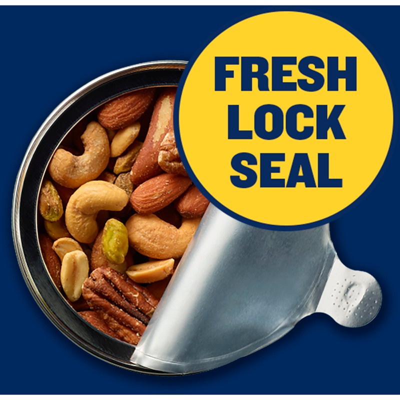 - PLANTERS NUTS: This 15.25 ounce resealable canister of PLANTERS Deluxe Mixed Nuts With Hazelnuts contains about fifteen 1 ounce servings and features a resealable lid designed to lock in long-lasting freshness