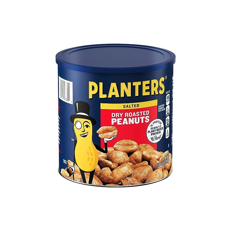 PLANTERS Salted Dry Roasted Peanuts, Party Snacks, Plant Based Protein 52 Oz Cannister