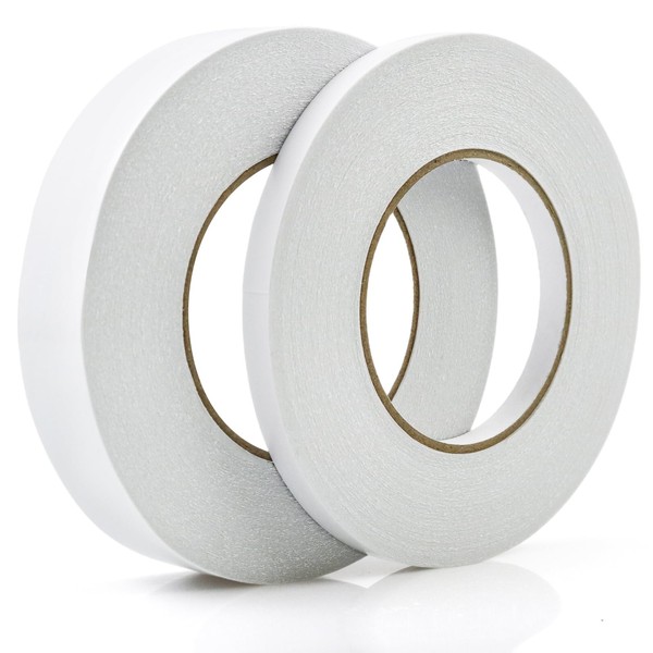 - 【Quantity and size】 You will get 2 rolls of double-sided adhesive fabric tape measuring 2/5 inches, 1-inch x 54.6 yards, long enough for your fabric patching, garment hemming, and working crafting needs.