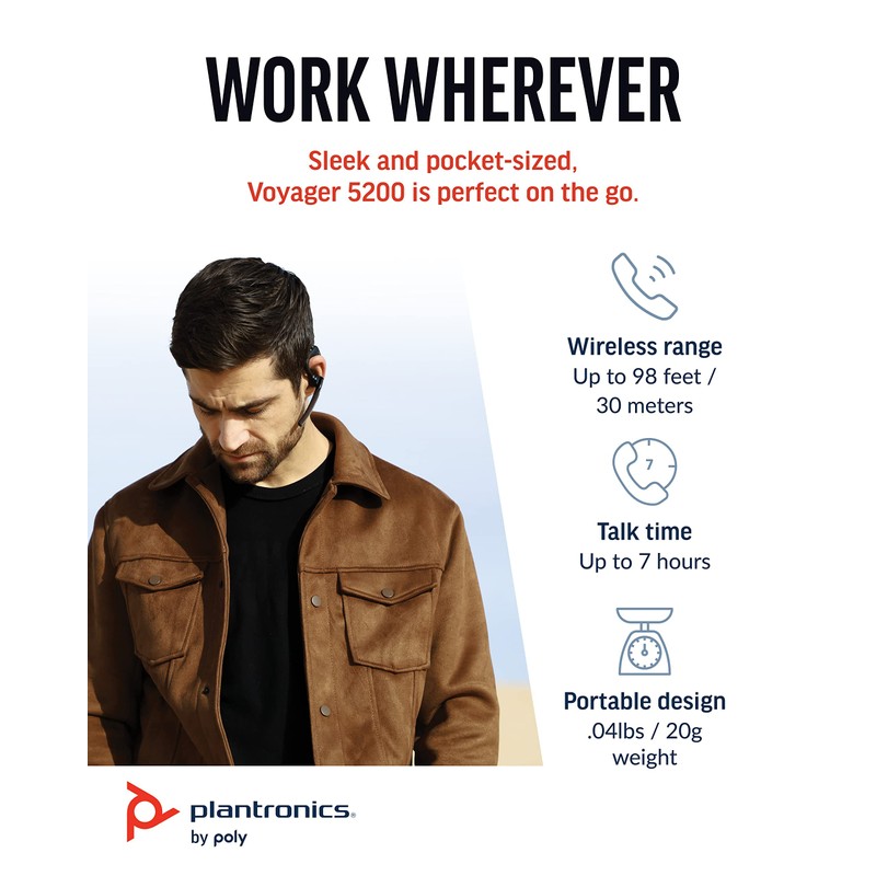 Plantronics Voyager 5200 - Auricular Bluetooth, Negro