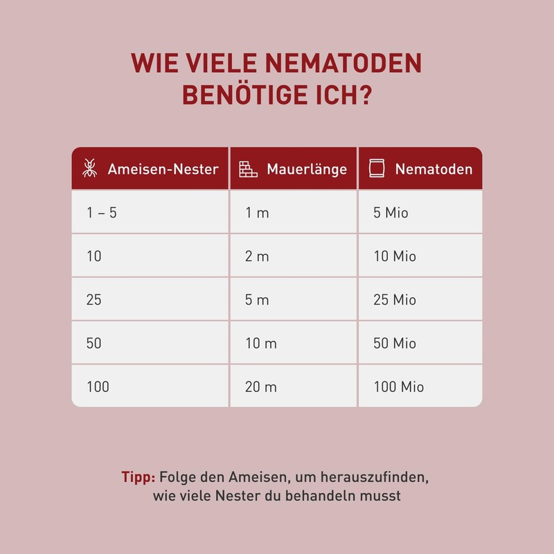 Get rid of annoying ants naturally! Discover our tiny helpers: SF nematodes, these are nematodes of the species Steinernema feltiae. These beneficial insects actively seek out the ant brood in the soil and fight them. As a result, the ants are driven away from their nesting site, so that they are looking for a completely new habitat at a safe distance. When you buy our SF nematodes against ants, you choose the biological and chemical-free method to get rid of ant plagues. Easy to use thanks to our easy-to-follow instructions. Look forward to relaxed evenings on the balcony and terrace - without annoying ants.