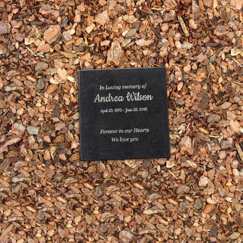 Our high-quality Personalized Granite Memorial Grave Stones helps ensure that the memory of someone close to you is imprinted on the earth as well as in your heart. This plaque is made from heavy-duty and high-quality black granite that is built to last, and we engrave your requested text with precision. Unlike vinyl or other means of customization, our laser-engraving process etches your custom text right into the granite. This granite tile is durable enough to install either inside or outside, so whether you place this granite memorial in your backyard, on a stone facade on the side of a building, or in a memorial garden, you can be assured that it will retain its readability for years to come. . No matter where you choose to use it, you can be sure that this tile marker is built to last, and the engraving you request will look just the way you want it to. Buy a Personalized Granite Memorial Grave Headstone today, and keep the memory of loved ones alive. If you are placing this in a cemetery, please be sure to check with them on their requirements before ordering. Proudly made in America. All of our products are designed, produced and shipped from the USA. Local materials are sourced when available.