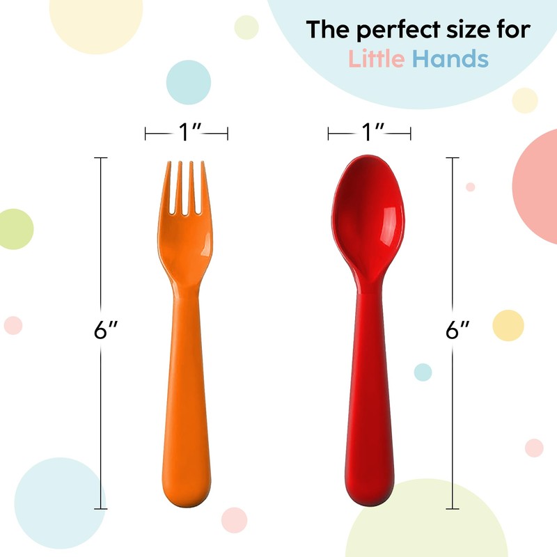 - PREMIUM QUALITY: The kids’ plastic silverware are perfectly designed for children, made using the highest quality plastic that are Durable, & Reusable, & dishwasher safe The kids spoon are solid and don't lose their shape under pressure. The Kids Forks are safe, but at the same time it will actually stab into the food.