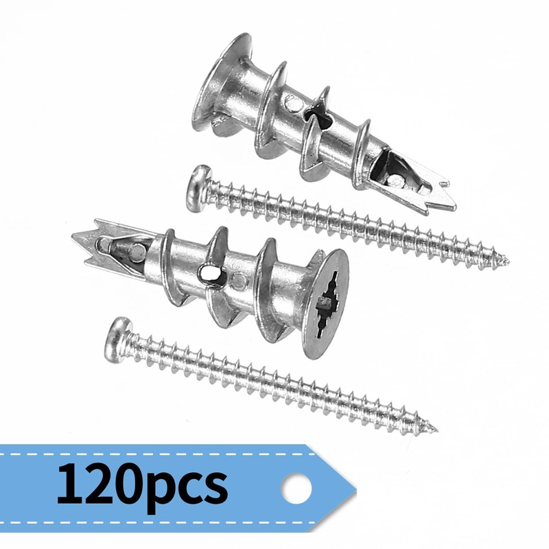 Plasterboard Dowels, Pack of 120 Self-Drilling Plasterboard Dowels, Includes 60 Cavity Dowels Metal with 60 Plasterboard Self-Tapping Screws Dowels Set for Mounting in Plasterboard Plasterboard