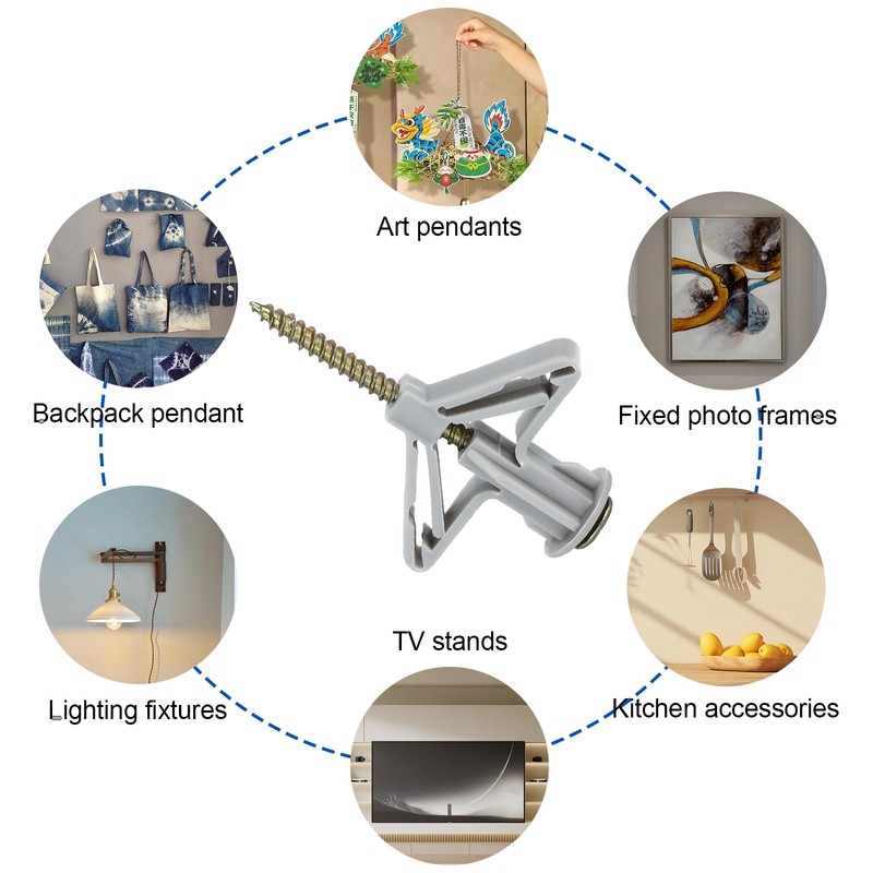 - Wide Application: These plasterboard fixings can be widely used for installing or hanging various items. Suitable for plasterboard, fibreboard, hollow ceilings, cavity wall, chipboard etc. Also suitable for small projects such as fixing picture frames, bathroom or kitchen accessories, TV shelves, decorations, art pendants, lighting fixture, and more
