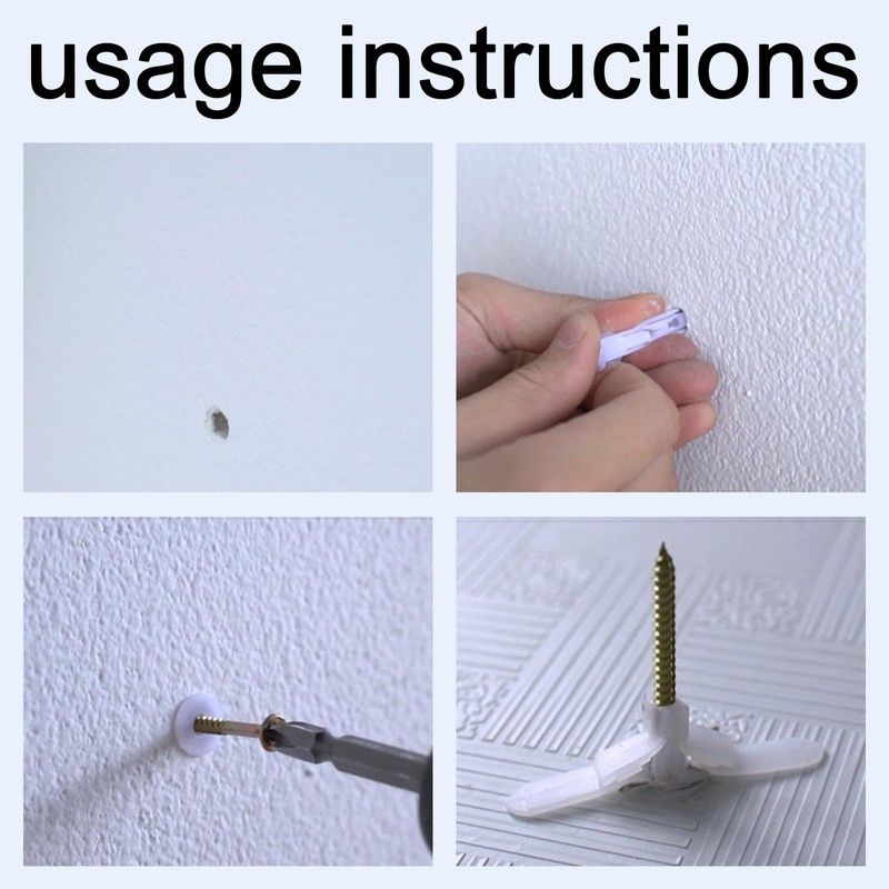 - Butterfly Wall Plugs Design: Our plasterboard fixings are designed with an anti-rotation structure, increases the fixing force. The expansion plug will not follow the screw when screw is screwed clockwise. This design is very easy to install and use, even beginners can easily use our plasterboard wall plugs