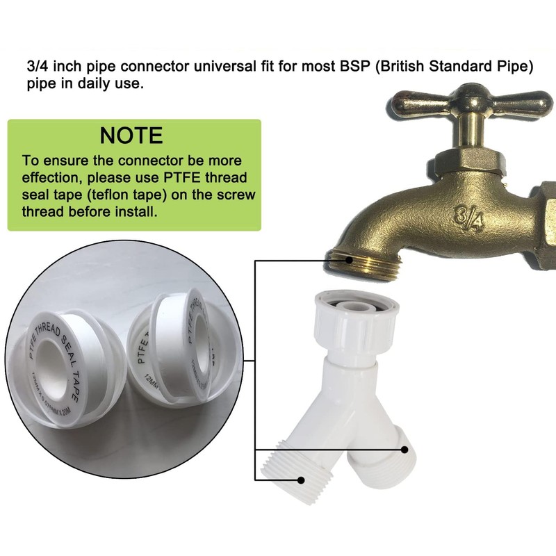 UNIVERSAL FIT - The connector is fit for 3/4 inch pipe which is the most normally BSP pipes. The main conncetor have a sealing ring prevents water leakage.
