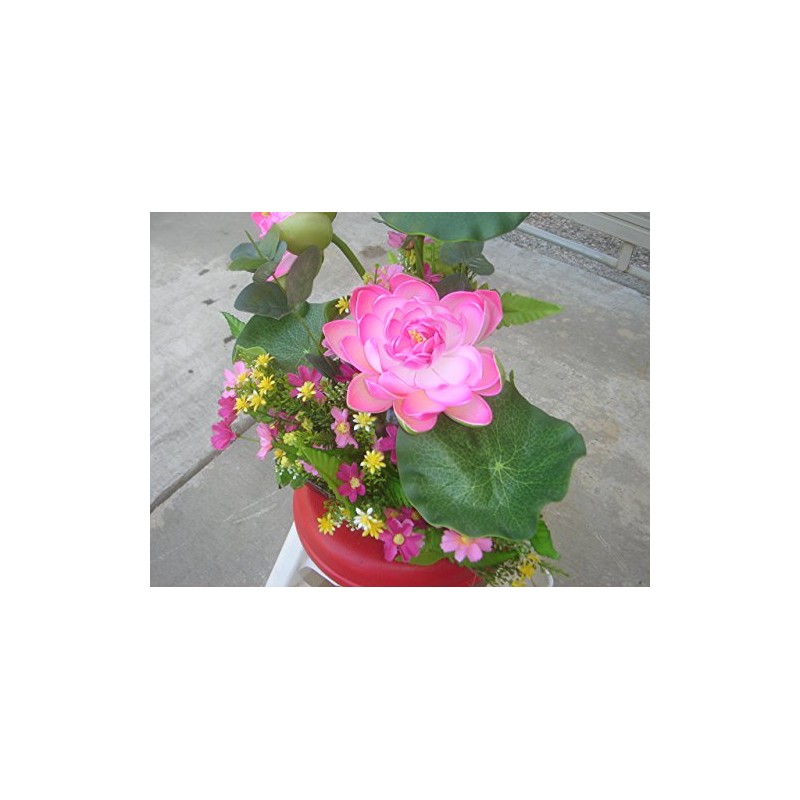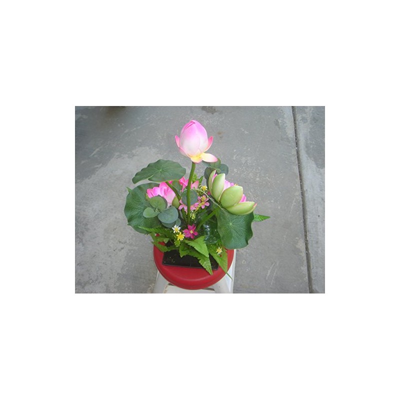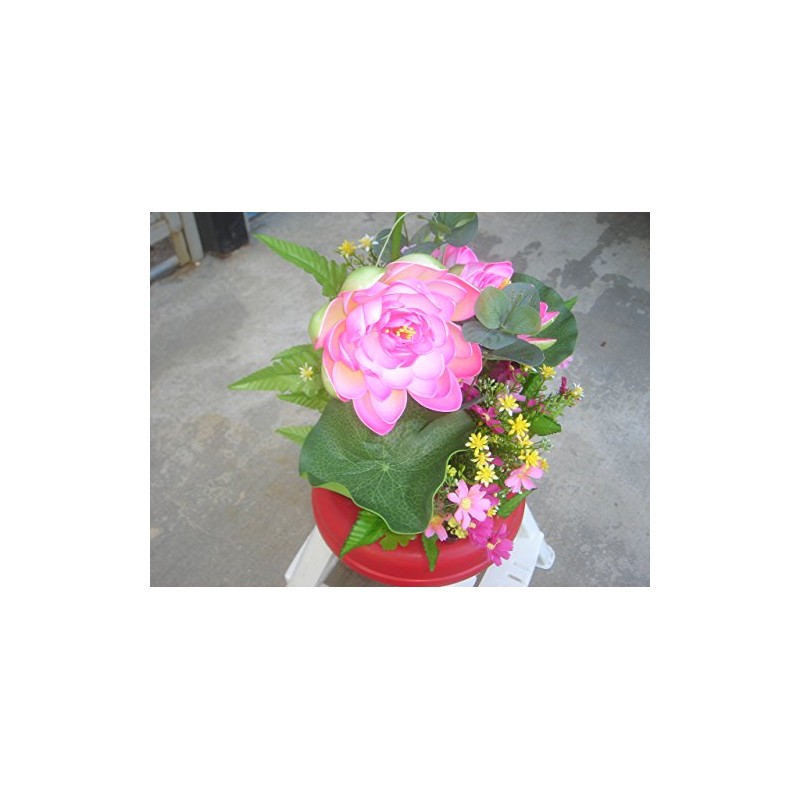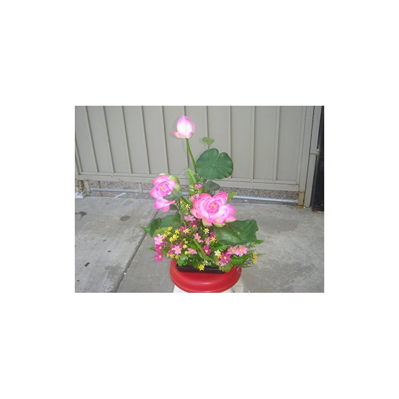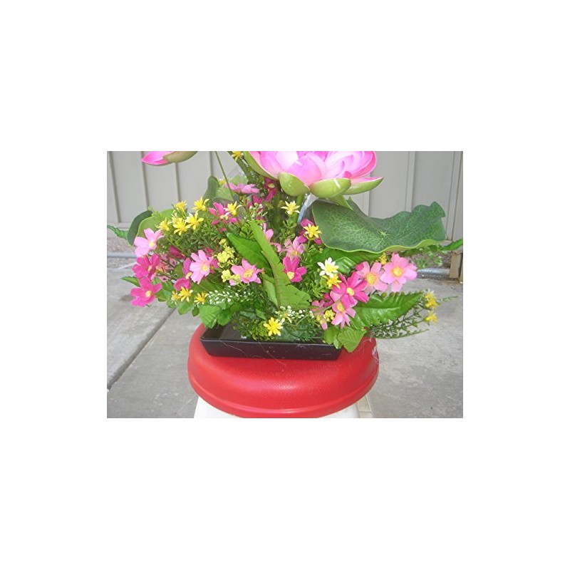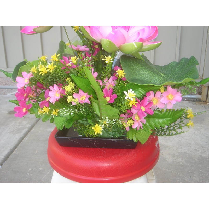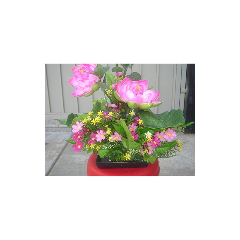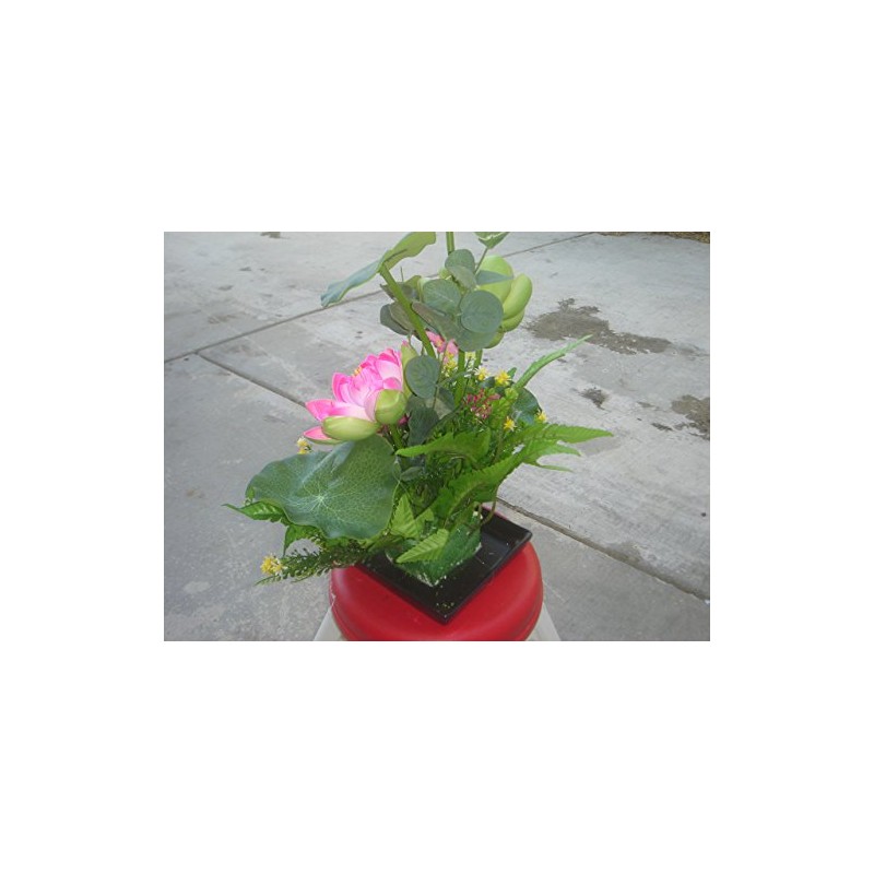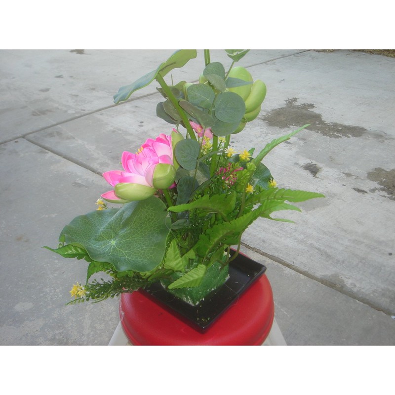 Plastic Artificial Lotus Flower with Black Square Procelain Pot