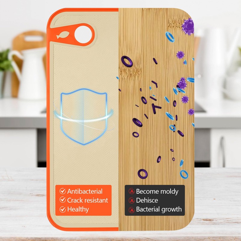 • Easy to clean: plastic chopping board uses a solid one-piece shape design without seams, avoids dirt and dirt and is easier to clean. Simply rinse with water. Equipped with hanging holes, saves space in the kitchen.