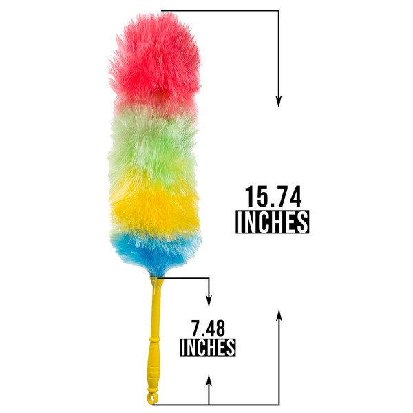 • The plastic duster can remove dust without chemicals. The magic duster cleaning tool can easily be washed in the sink with cool to warm water. The rainbow feather duster it becomes electrostatically charged as you use it, attracting dust, pollen and hairs with ease.