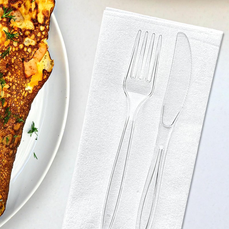 • 【DURABLE & HEAVY DUTY】: Our disposable plastic spoons knives and forks are more durable and not easy to bend. They are perfect for any type of heavy, hard or thick food, enjoy your meal without worrying about food falling.