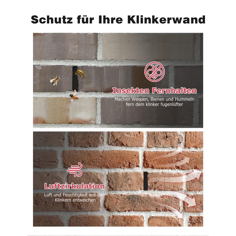• Joint fan clinker: with the Mellbree clinker joint fan, you can confidently close the entire ventilation joints in your clinker facade. It optimally protects your clinker wall by allowing air and moisture to escape from the clinker while preventing wasps, bees and bumblebees etc. from getting through the butt joints behind the clinker.