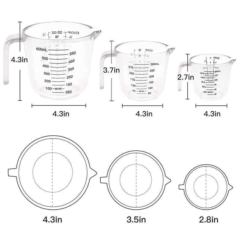 - 【Package Included 】A set of measuring jugs plastic has three sizes.(150ML/300ML/600ML)T