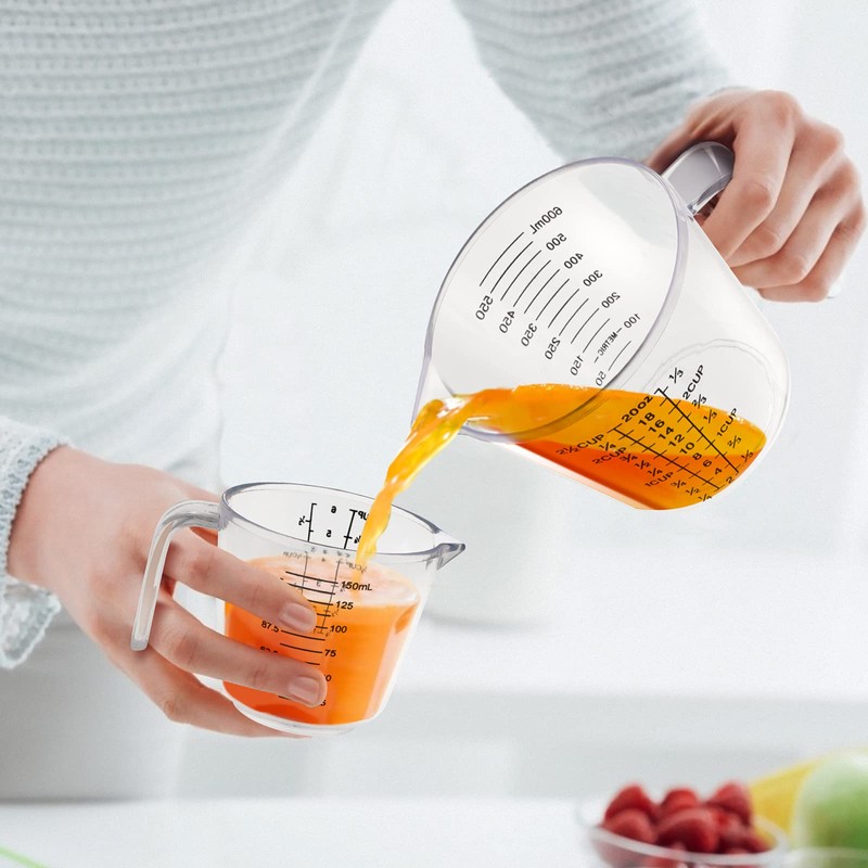 - 【Multifunction】Suitable for measuring flour, sugar, vinegar, sauce, or other liquid or powder. Triangular mouth design, no leakage, heat and cold resistance, not easy to deform.