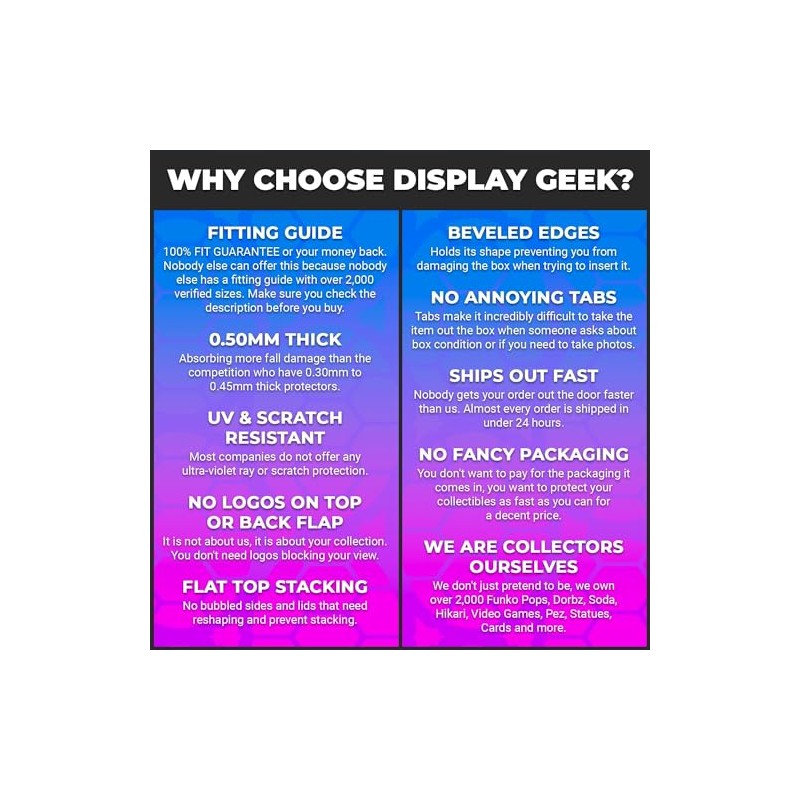 - Flat Top Stacking - Created by collectors to stack boxes effortlessly. Super easy to assemble.