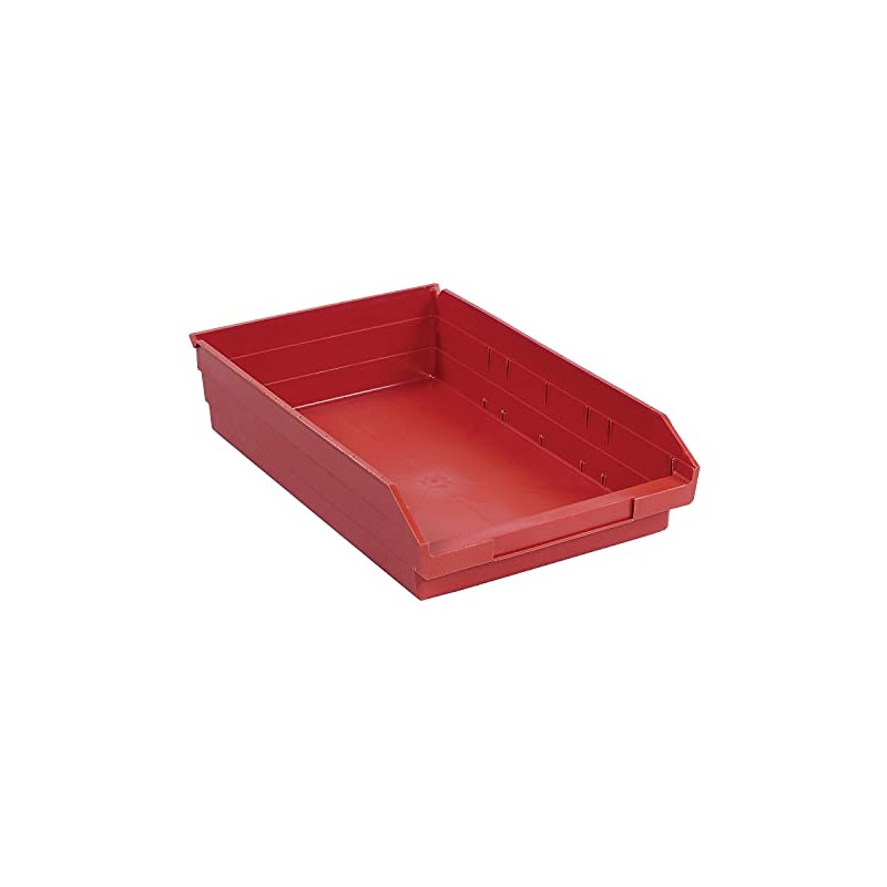 Plastic Shelf Bin Nestable 11-1/8"W X 17-7/8" D X 4" H Red - Lot of 12