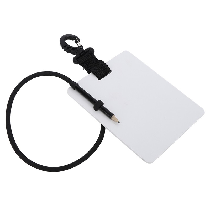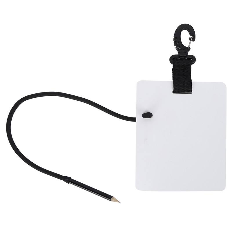 1、Fix the replaceable pencil with black floating rubber tube, effectively avoid falling into water. 2、The plastic whiteboard, can recycled, practical and convenient, making it suitable for taking notes underwater. 3、Equipped with strong buckle clip, can easily and conveniently fix to the BCD vest. 4、Made of high quality plastic material, sturdy, durable and long service life. 5、Small size and lightweight, easy to carry and store, convenient to use.