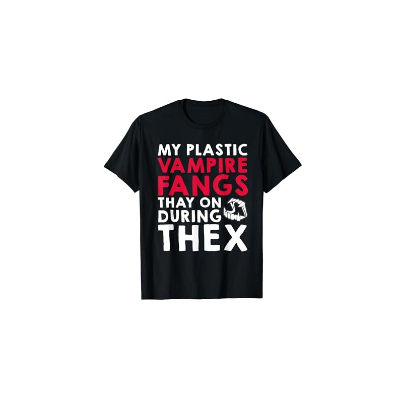 - My plastic vampire fangs thay on during thex. Funny sarcastic design is perfect for Halloween, trick-or-treating, costume parties, and spooky times. Design features classic plastic vampire teeth and is perfect for who loves October and horror monsters.