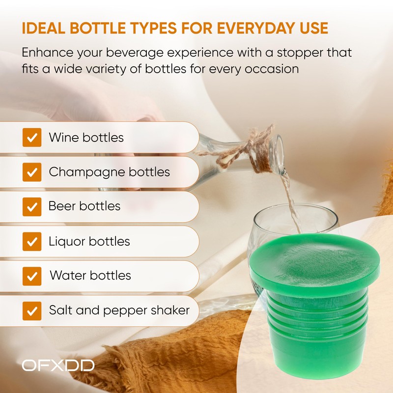 - The beverage bottle stopper is for everyday use or a special occasions. The plastic bottle stopper is easy to store and transport. The beverage bottle stoppers is soft and suitable for all bottle types such as wine bottles, beer bottles, soy bottles, vinegar bottles and so on.